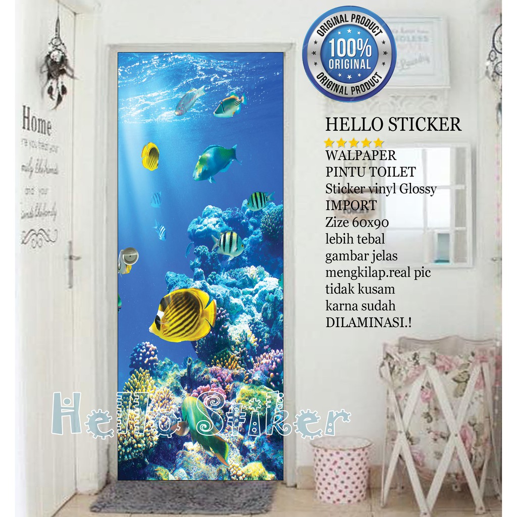 stiker pintu kamar mandi gambar ikan size 60x190cm . Sumber Gambar : shopee.co.id